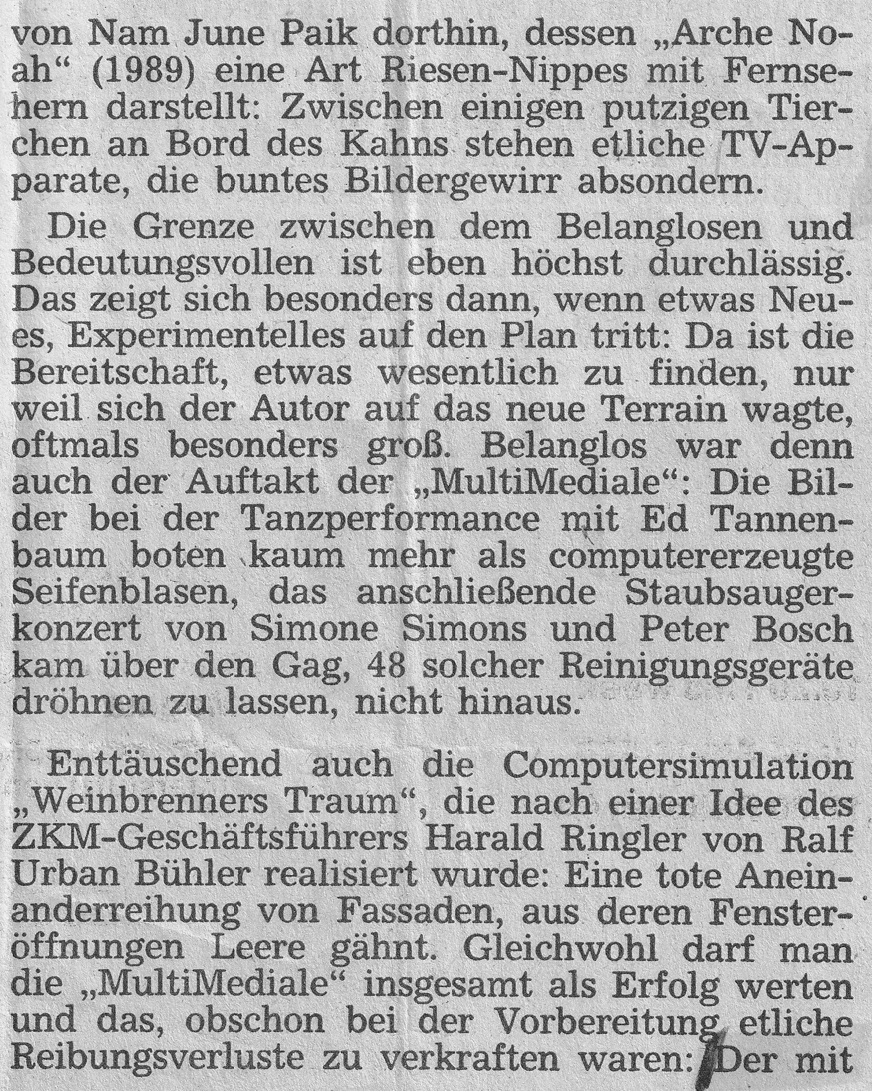 Mitarbeit bei der Organisation des Medienkunstfestival des ZKM in Karlsruhe Multimediale 2 - 1991